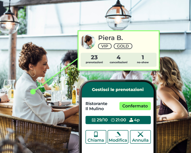 Grazie al TheFork Manager puoi raccogliere informazioni preziose sui tuoi clienti e farli sentire a casa la prossima volta che verranno a trovarti (per esempio informazioni su allergie, piatti preferiti, tavolo preferito, date importanti ecc.). Condividi le informazioni con tutto il team e trasforma gli ospiti in clienti fedeli.