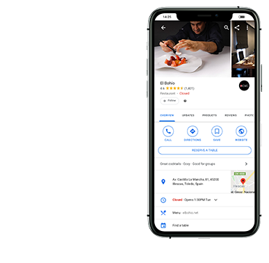 - Anúnciate en la parte superior de los resultados de búsqueda, da a conocer tu restaurante y muestra las mejores reseñas de los clientes